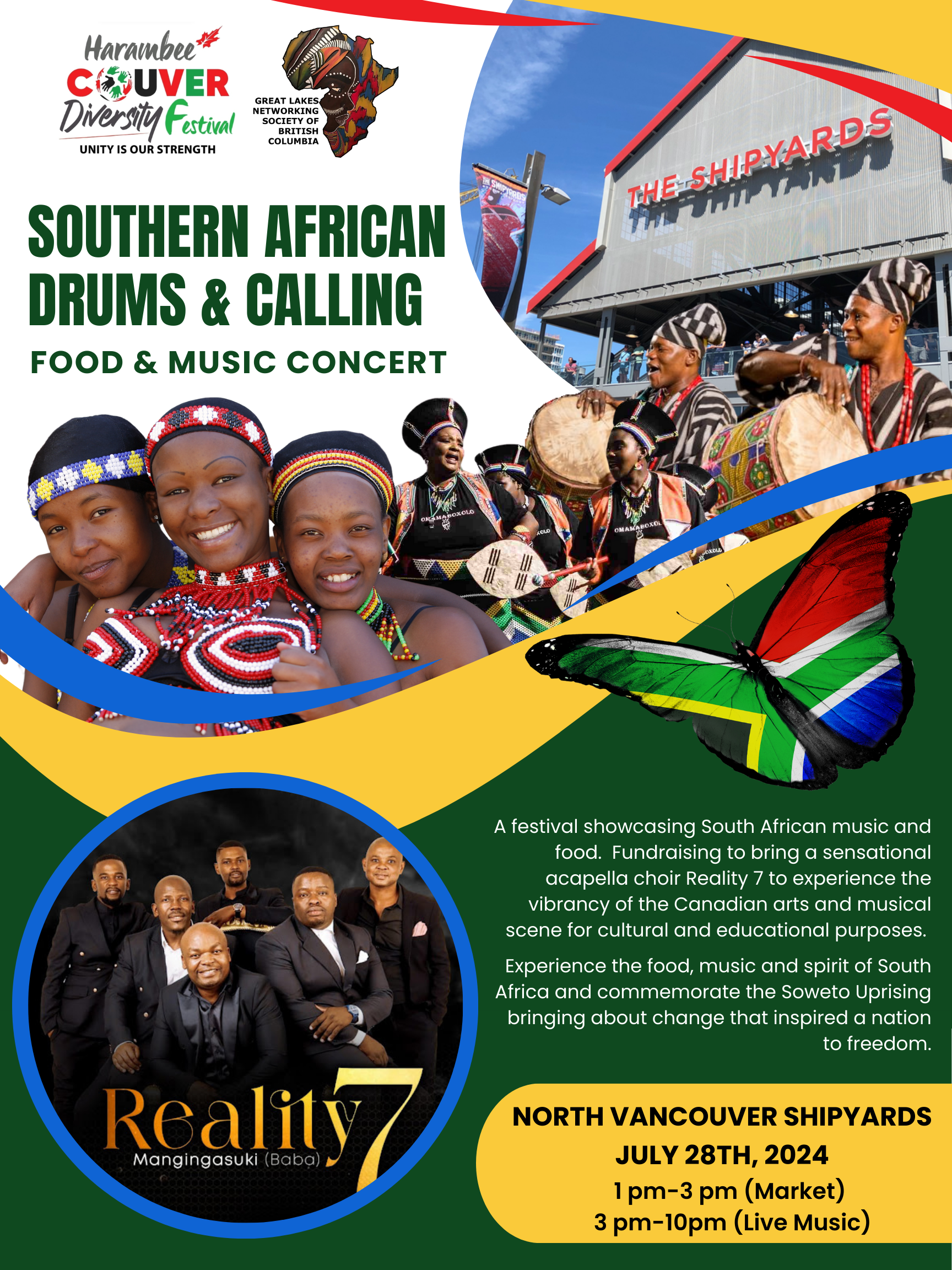 Come join us for a fun-filled event at 600 Campbell Ave, Vancouver, BC! Let's come together to support a great cause and make a difference in our community. Let us commemorate the 48th anniversary of the Soweto Uprising by bringing REALITY 7 Choir from Soweto South Africa to our community. Enjoy live music, local performances, delicious African cuisine, cultural exhibits, and exciting activities while contributing to a worthy charity. RESERVE YOUR TABLE via info@greatlakessociety.org and our different social media outlets or by calling any of the phone numbers below.SPREAD the word and be party of this meaningful cause.We anticipate celebrating with you.www.greatlakessociety.orgPhone: 604-789-4212 ; 672-338-1968 ; 1-855-655-4567 Click here to reserve a seat https://website-9b356346.fij.nsk.mybluehost.me/wp-content/uploads/2024/06/Soweto-Fundraiser-1.mp4